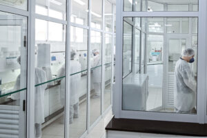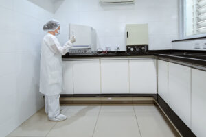 Área com 3 laboratórios independentes, dedicada a manipulação de substâncias especiais – hormônios, citostáticos e antimicrobianos; Equipados com cabines de segurança biológica e salas com pressão negativa para evitar contaminação cruzada.