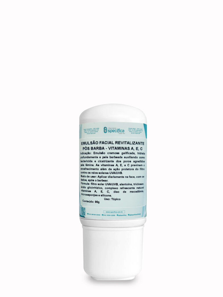 Emulsão cremosa gelificada, hidrata profundamente a pele barbeada auxiliando como bactericida e cicatrizante dos poros agredidos pela lâmina. As vitaminas A,E,C, previnem o envelhecimento.